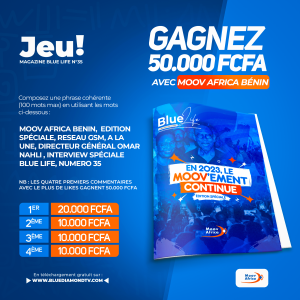 MOOV AFRICA BENIN, EDITION SPÉCIALE, RESEAU GSM, A LA UNE, DIRECTEUR GÉNÉRAL OMAR NAHLI, INTERVIEW SPÉCIALE BLUE LIFE, NUMERO 35 :
