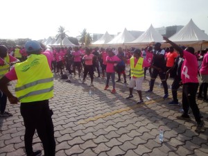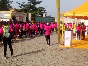 » Prêt à dire non » : c’est sous ce slogan que se sont mobilisés hommes, femmes et enfants, démontrant leur ferveur à lutter contre le cancer du sein. Rendez-vous fixé devant l’École Nationale d’Économie Appliquée et de Management (ENEAM), le trajet était d’avance connue par tous. Cette initiative est intitulée » La Marche Rose. Elle tend à souligner l’importance, l’impacte et le lien direct entre la santé et le sport. » La Marche Rose » est un projet commun initié par l’entreprise de télécommunication MTN Bénin, l’ONG Etonâm, le docteur Viviane OKE, ainsi que plusieurs autres associations. Une fois l’étape de la marche achevée, le cours de la matinée s’est poursuivi sur le parking de MTN Bénin avec des séances d’étirement, de photographies, de conseils et de dépistages (05 tentes disponibles sur les lieux pour une consultation) Cette première édition fut une belle réussite, et tous ont avoué avoir passé des moments idylliques et instructifs.